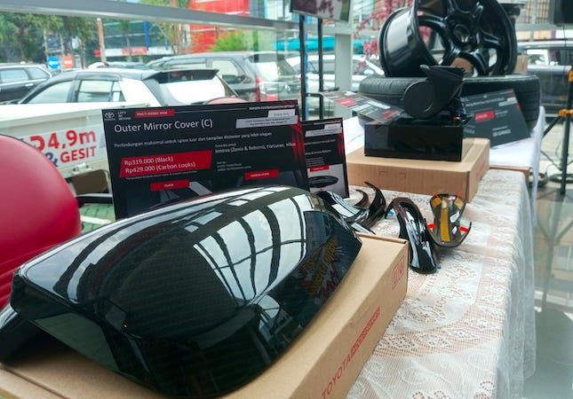 Mulai dari Racing Wheel sampai premium horn untuk mobil Agya dan Yaris yang bisa dibeli di GR Garage Auto2000 PIK dengan harga Rp 2,3 jutaan.