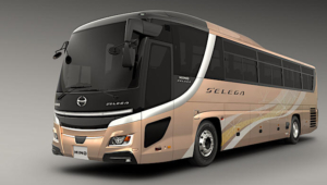 Untuk sektor transportasi massal, Hino memperkenalkan Selega generasi terbaru yang akan resmi diluncurkan pada musim semi 2026.